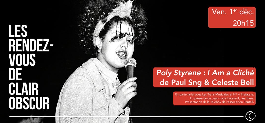 Vendredi soir, Clair Obscur et l'Arvor, en partenariat avec Les Trans Musicales, projettent Poly Styrene : I Am a Cliché de Paul Sng et Celeste Bell. Un documentaire sur Poly Styrene, une chanteuse-autrice-compositrice britannique d'origine somalienne et écossaise à l'origine du groupe punk X Ray Spex. Retour sur une figure du punk de 77, qui aura une influence sur les Riot Grrrl et la scène afro-punk